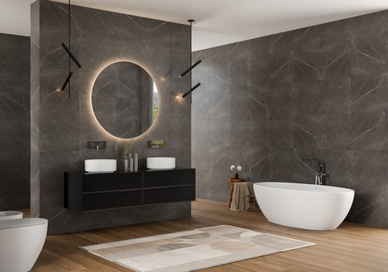 Materialele fac diferența pe termen lung. În baie, umiditatea constantă pune presiune pe orice suprafață.