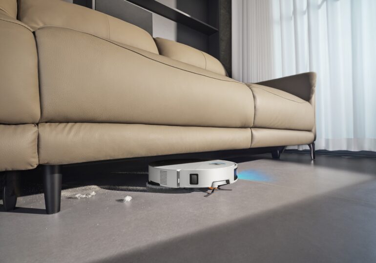 Unul dintre lucrurile care se văd imediat este că X60 Ultra Complete ajunge în zonele pe care, sincer, le cam amâni: are un profil ultra-subțire (7,95 cm), ca să poată curăța sub mobilierul jos. Practic, îți scoate praful din locurile alea „invizibile”, fără să trebuiască să muți jumătate de casă.