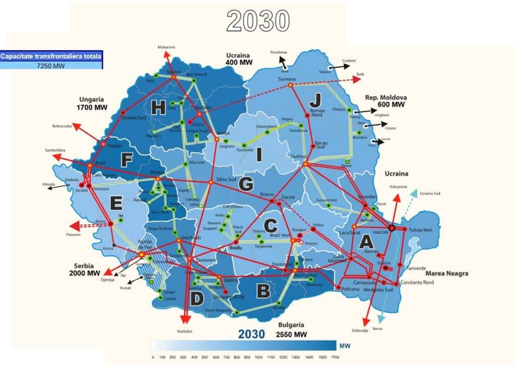 Capacitatea transfrontalieră totală a României va crește la 7250 MW