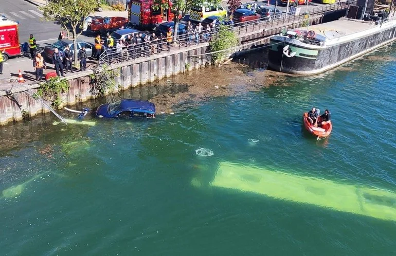 Autobuzul s-a scufundat complet în fluviu, în apropierea unui pod. Mașina de care s-a ciocnit a ajuns și ea în apele Senei.