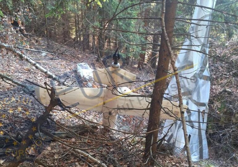 O dronă de mari dimensiuni, care avea atașată o parașută, a fost găsită duminică într-o zonă împădurită din comuna Lerești, județul Argeș, iar autoritățile au demarat verificări pentru a stabili cum a ajuns acolo și de unde provine aparatul de zbor.