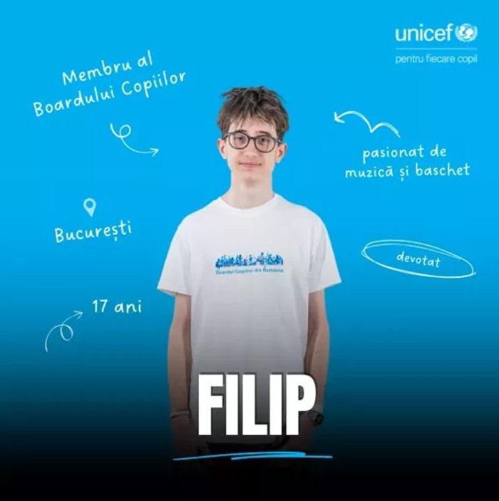 ,,Am ales să fac parte din Boardul Copiilor susținut de UNICEF deoarece am văzut copii cu idei valoroase care nu știau cum să se facă auziți și voiam să le ofer o platformă comună. Îmi doresc ca decidenții să țină cont de vocile noastre în toate procesele care ne privesc și să asigure acces egal la drepturile copiilor din medii diverse."
