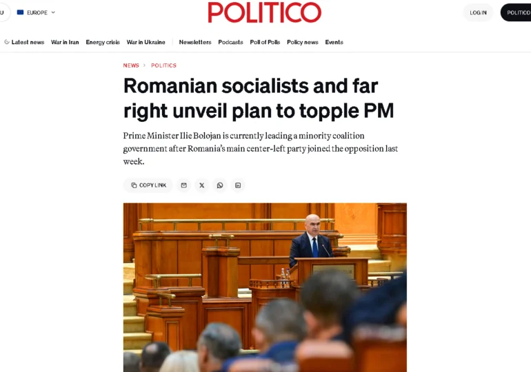 La o săptămână după ce social-democraţii din România (PSD) au iniţiat demersuri pentru demiterea prim-ministrului Ilie Bolojan, cele mai populare două partide din ţară pregătesc o moţiune de cenzură, scrie POLITICO. Liderii PSD - fost membru al coaliţiei de guvernare - şi ai Alianţei pentru Uniunea Românilor (AUR), partidul de extremă dreapta din opoziţie, care conduce în sondaje, au declarat luni, în cadrul unei conferinţe de presă comune, că vor depune împreună o moţiune de cenzură.