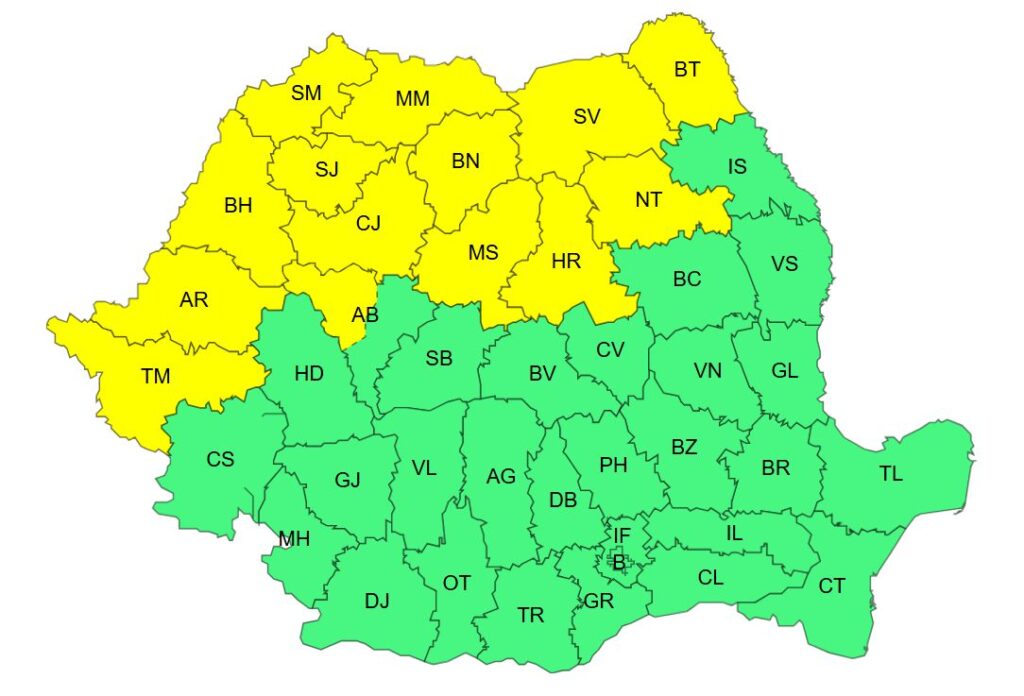 Pe fondul acestor temperaturi extreme, ANM a emis și o atenționare de cod galben pentru instabilitate atmosferică severă.