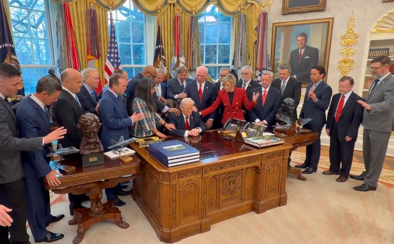 Pe 5 martie, președintele american s-a rugat în Biroul Oval alături de un grup de pastori evanghelici, care și-au pus mâinile asupra lui și s-au rugat „pentru harul și protecția Ta asupra lui... și asupra trupelor noastre”.