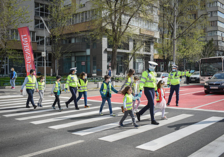 O trecere de pietoni de tip covor antiderapant din material bicomponent a fost inaugurată, marți, în București, fiind prima de acest fel din Capitală.