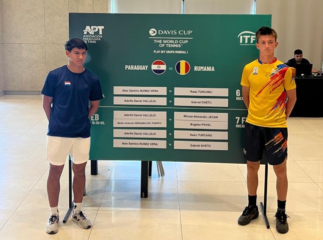 Echipa masculină de tenis a României se află la egalitate cu Paraguay, 1-1, după primele două partide de simplu din cadrul play-off-ului Grupei Mondiale I a Cupei Davis, desfășurat la Asuncion.